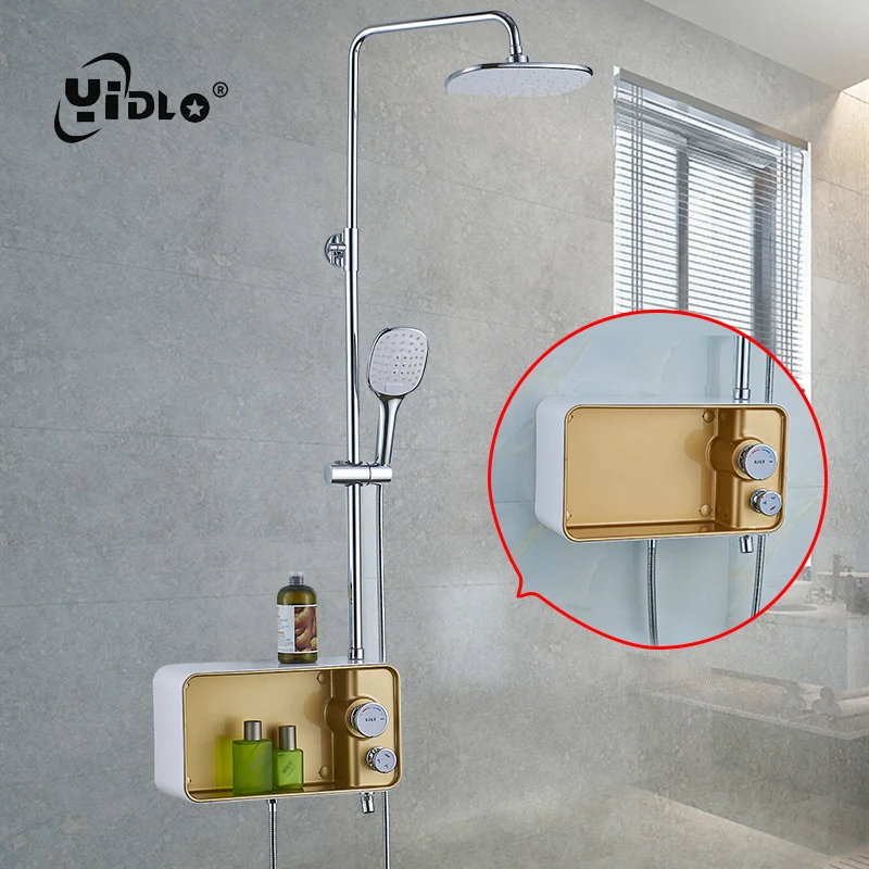 . 激安 YiDLon シャワーの蛇口真鍮クロームウォールマウントバスタブ蛇口レインシャワーヘッドスクエアハンドスライドさせるバー浴室ミキサータップセット 通販 価格.