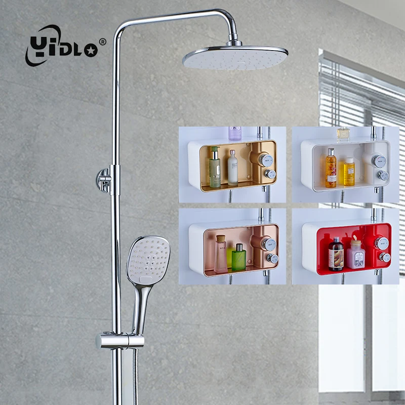 安い YiDLon シャワーの蛇口真鍮クロームウォールマウントバスタブ蛇口レインシャワーヘッドスクエアハンドスライドさせるバー浴室ミキサータップセット 通販 価格