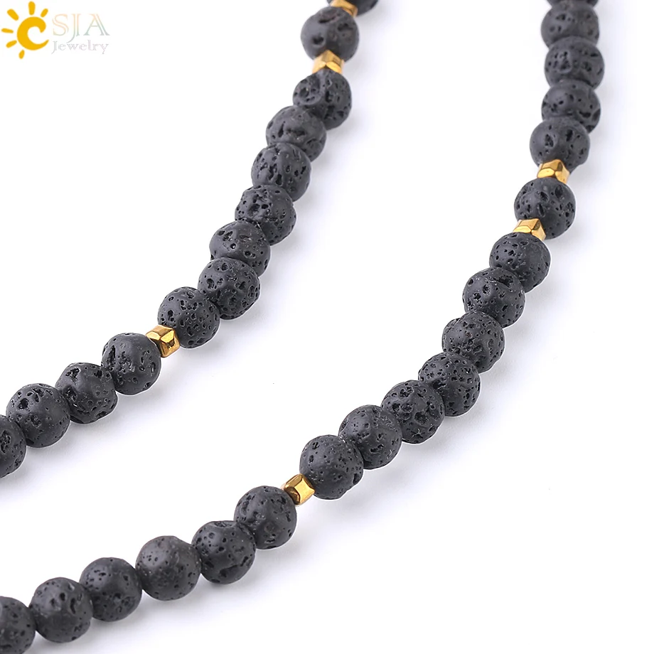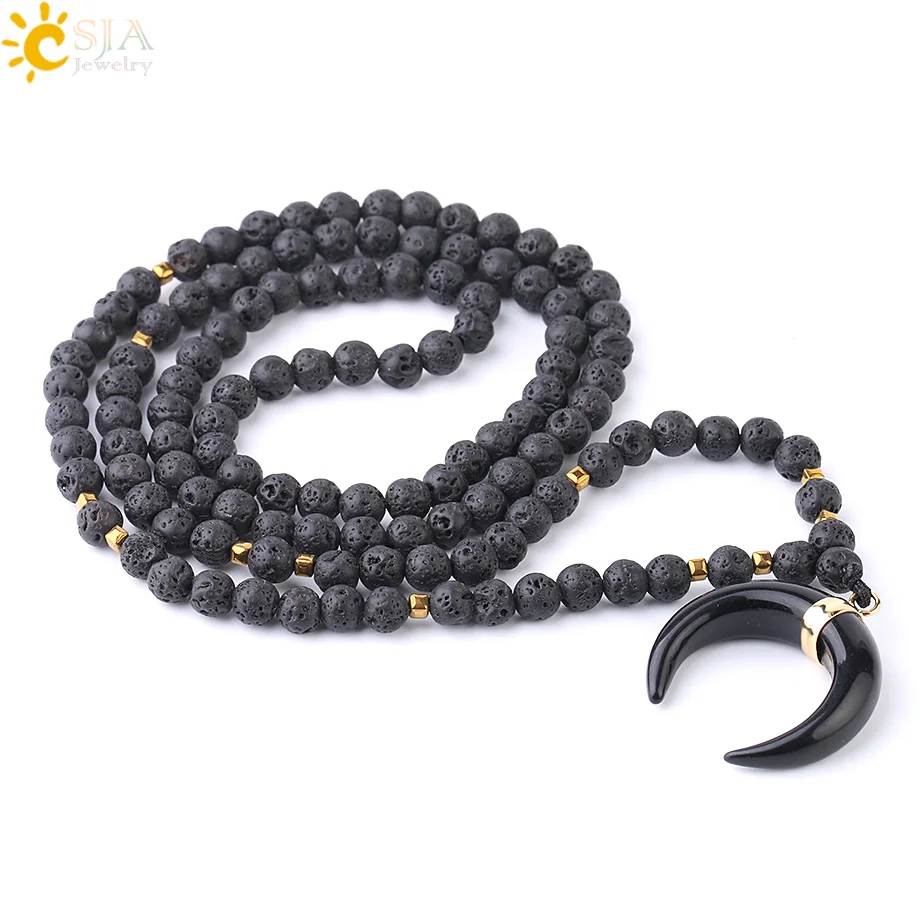 激安 CSJA 6 ミリメートル天然溶岩石のネックレスブラック火山岩ロープチェーンハーフムーンペンダント治癒のための男性女性 F805 通販 価格.