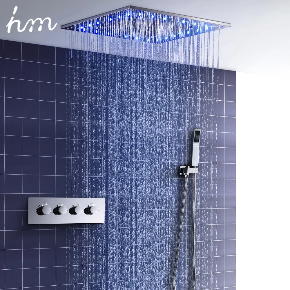 安い Hm Led シーリングシャワーセット 20 インチ定温度変化ミストレイン浴室のシャワーヘッド複数の機能シャワーダイバー オンライン 価格
