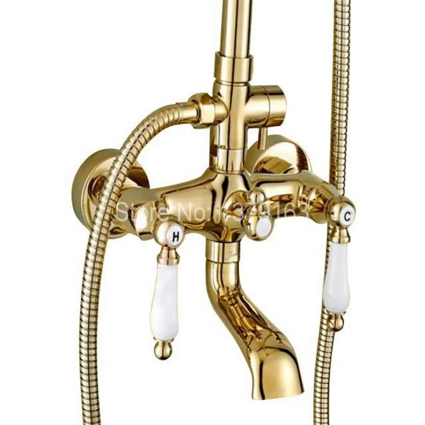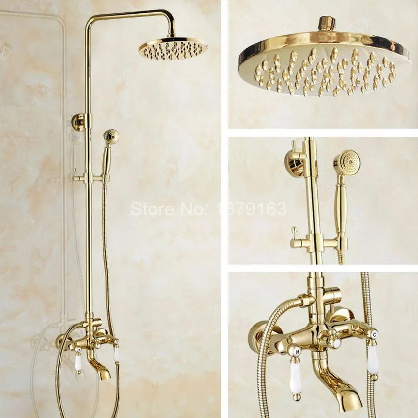 安い シャワー蛇口ゴールド真鍮の浴室のシャワーミキサータップ蛇口セットレインシャワーヘッドラウンドウォールマウントバスタブ蛇口 agf362 オンライン 価格.