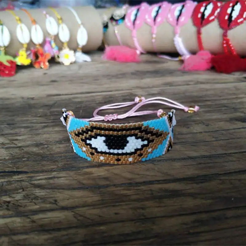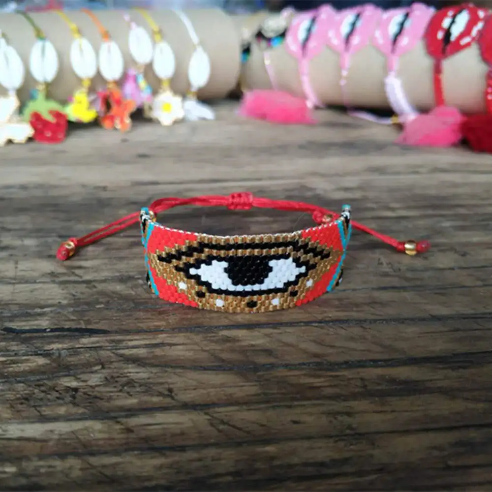 安い Balibali ラッキーみゆきシードビーズブレスレット邪眼咬傷唇ピンク赤シードビーズ手作り調節可能なロープ女性ジュエリーギフト 通販 価格.