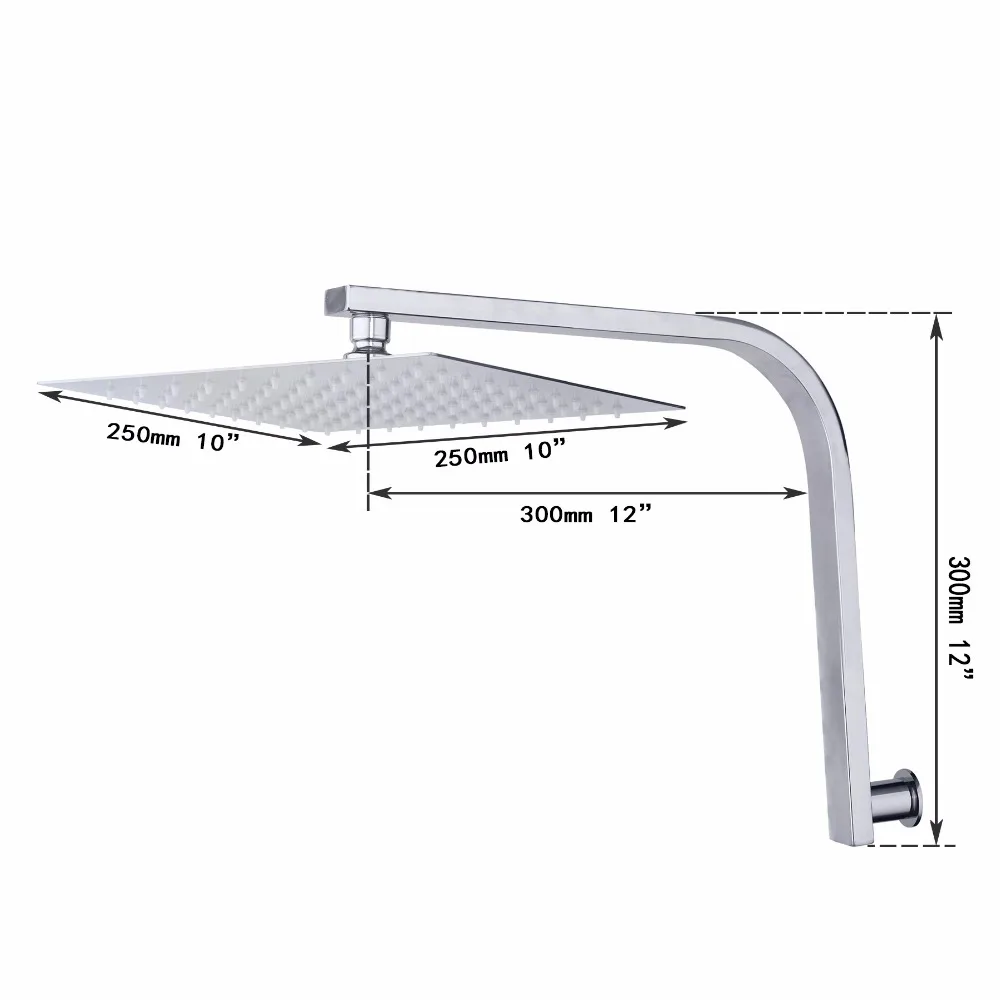 買取 Kemaidi au 10 インチ浴室壁掛けスクエア雨ステンレス鋼のシャワーヘッドミキサークローム仕上げタップ シャワーアームセット オンライン 価格.