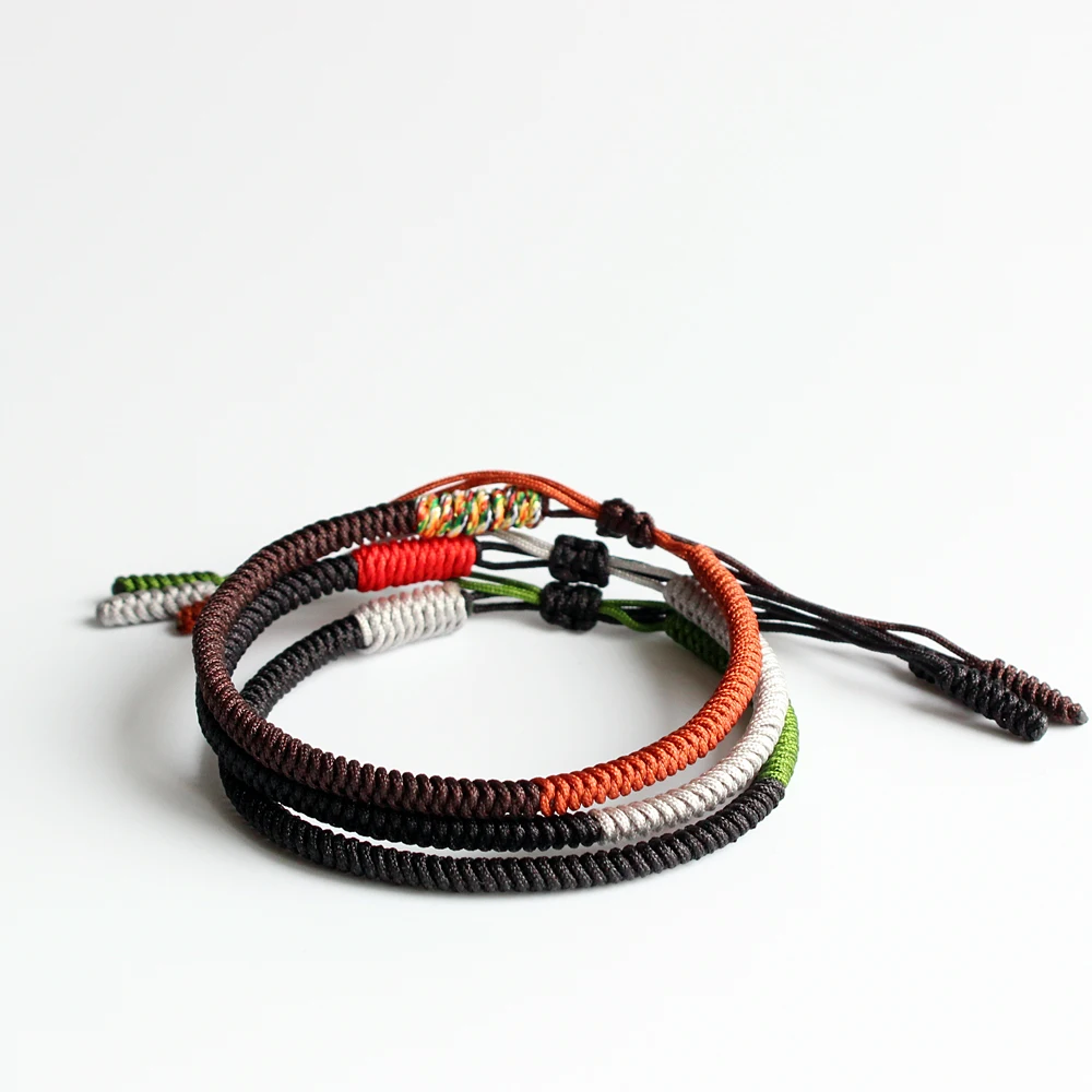 激安 チベット仏教handbraidedノット幸運ロープブレスレット僧侶祝福されたジュエリーワンハートに仏の伝統 禅 ダルマ オンライン 価格